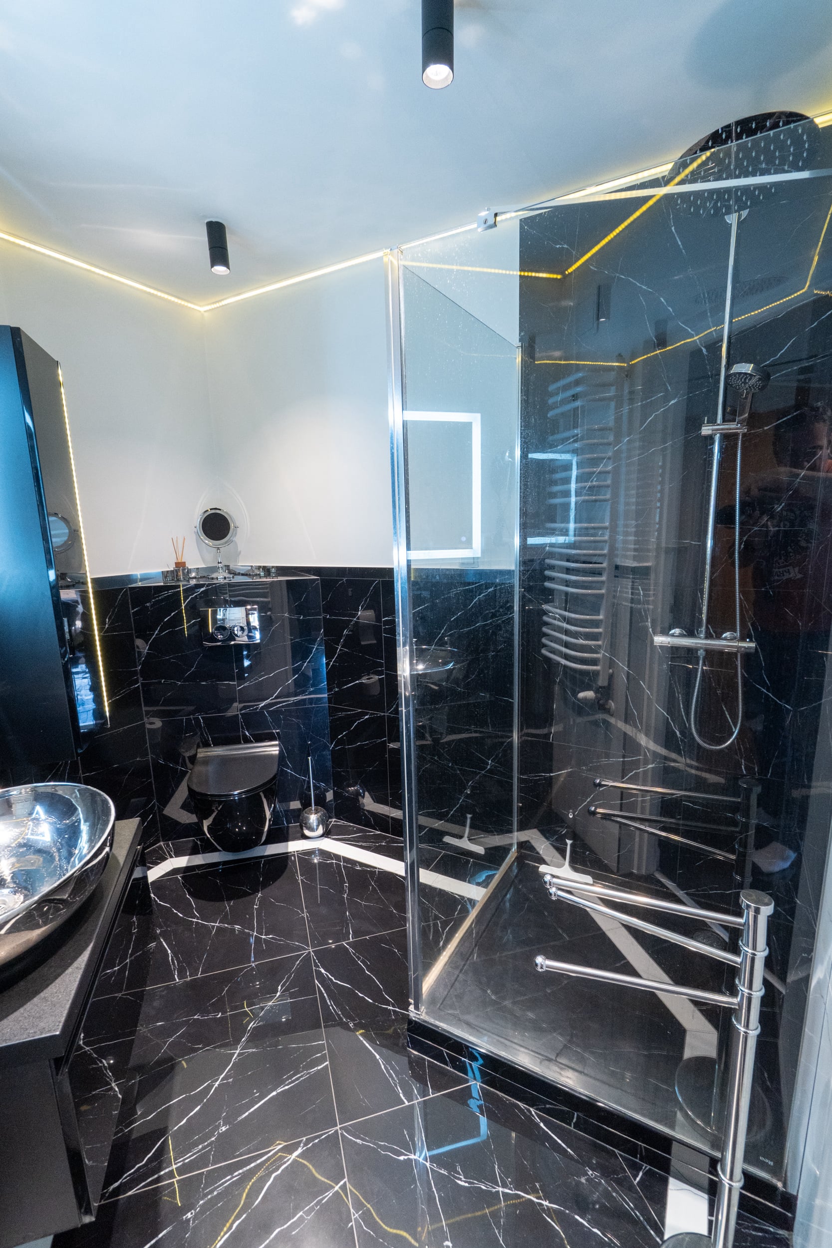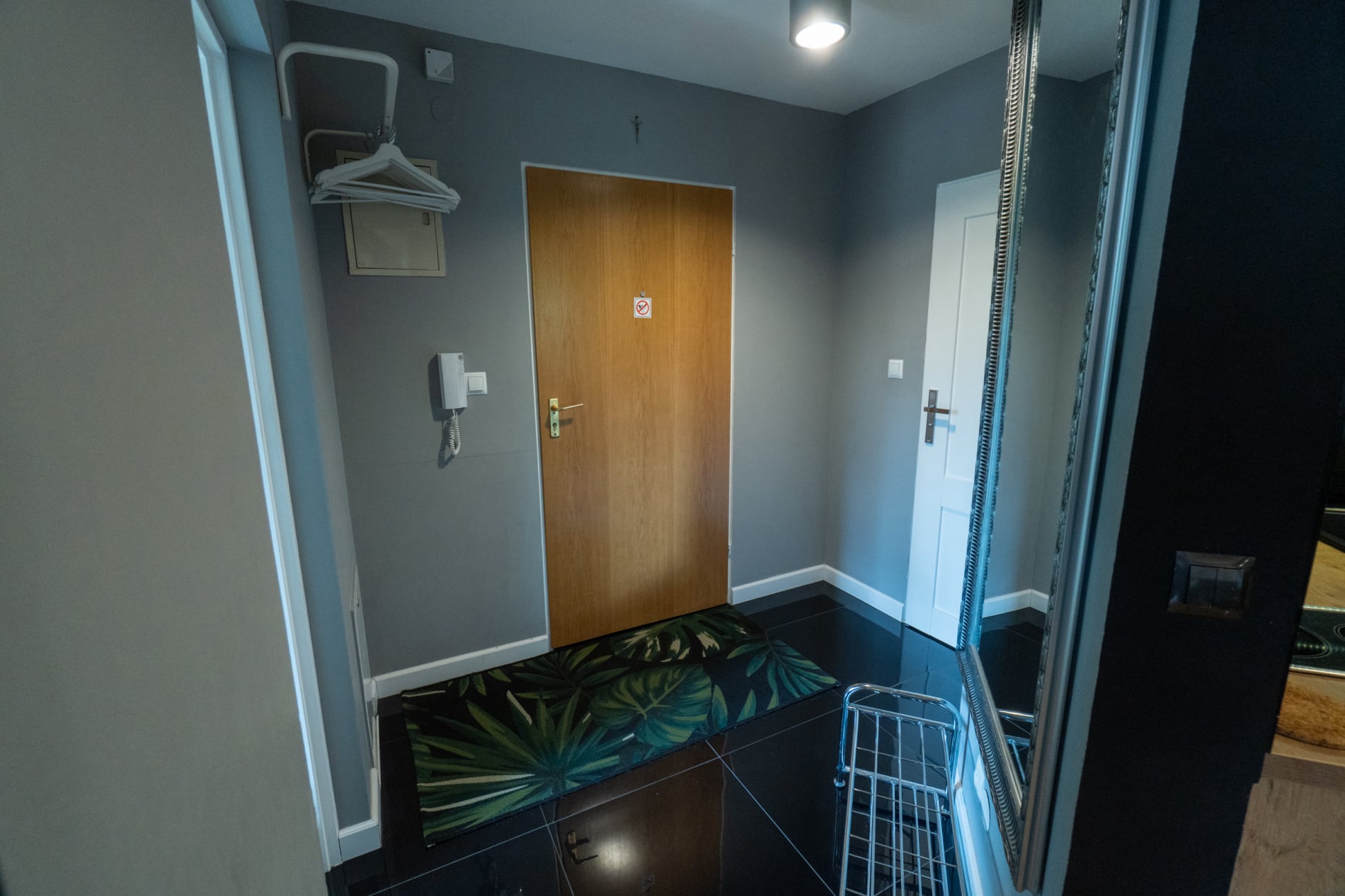 Apartament stanowi samodzielnie mieszkanie. Przeznaczony jest dla 4 osób z możliwością dokwaterowania dodatkowo jednej osoby za niewielką dopłatą. Apartament składa się z pokoju dziennego z aneksem kuchennym, drugiego pokoju, łazienki, przedpokoju i wielkiego balkonu. W pokoju dziennym jest rozkładana sofa, natomiast w drugim pokoju znajdują się dwie rozkładane sofy. Na dużym balkonie znajdziemy stolik i krzesła. Dodatkowo do dyspozycji, zamykany garaż podziemny z miejscem parkingowym.